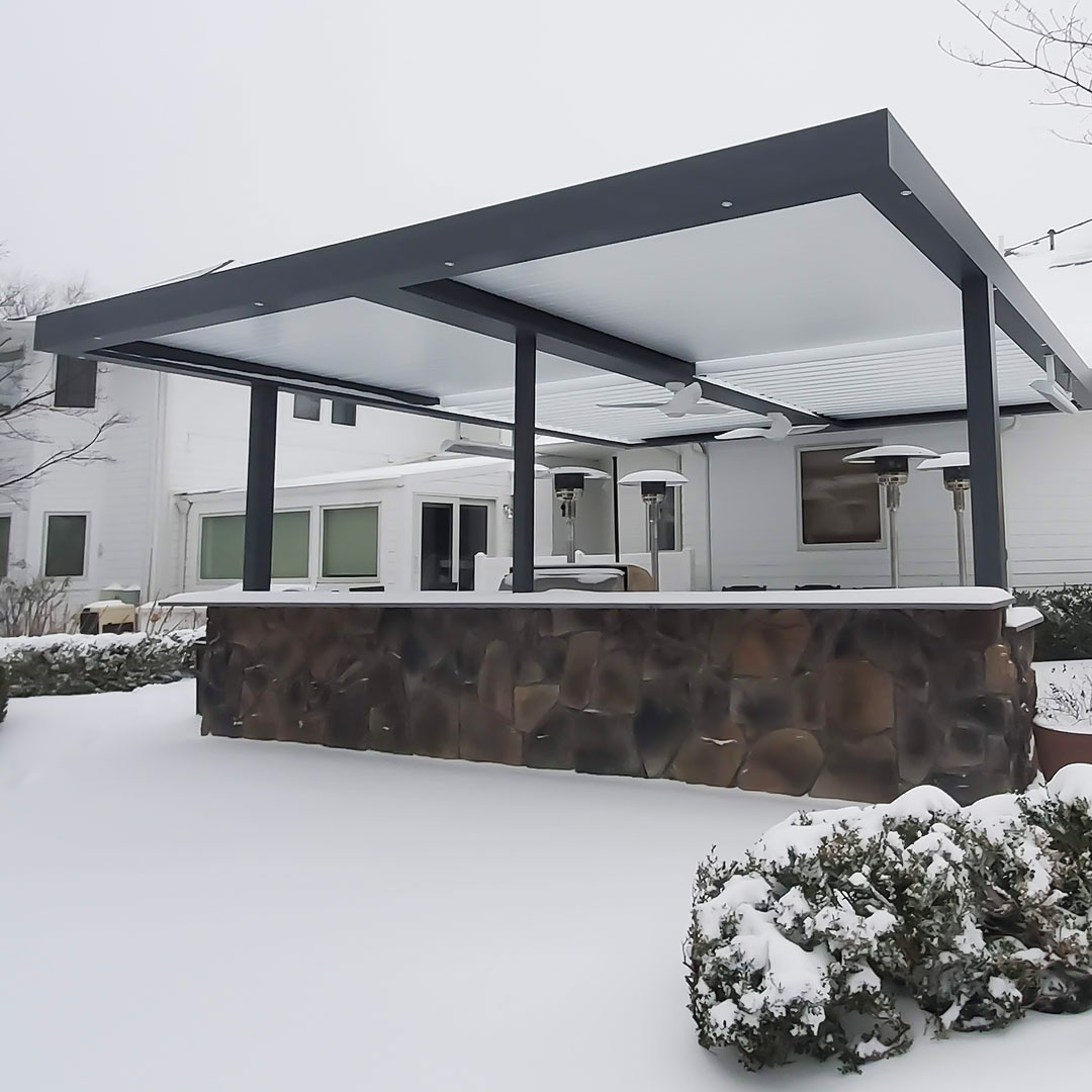 In addition, when it comes to Apollo system, each is custom designed for your georgraphic area. If you live in an area with large snow loads, this is taken into account when determining things like span or post placement. We don’t have a one-size-fits all louvered pergola kit. We build them specifically for you.